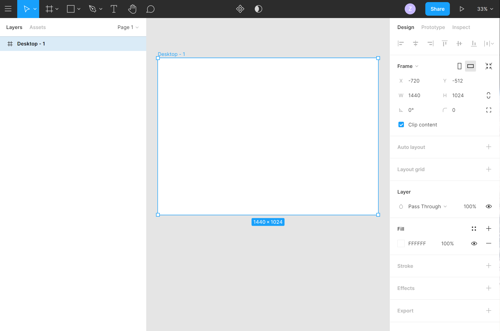 At the left side of your screen, under Layers, select frame Desktop - 1.