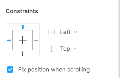 At the right side of your screen under Constraints, check Fix position when scrolling to make it position fixed.