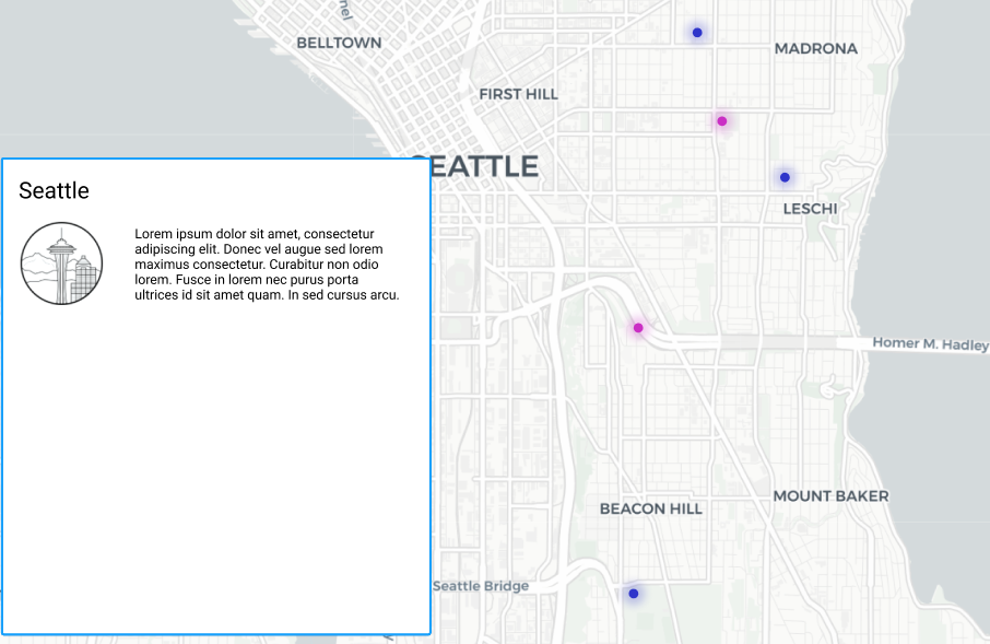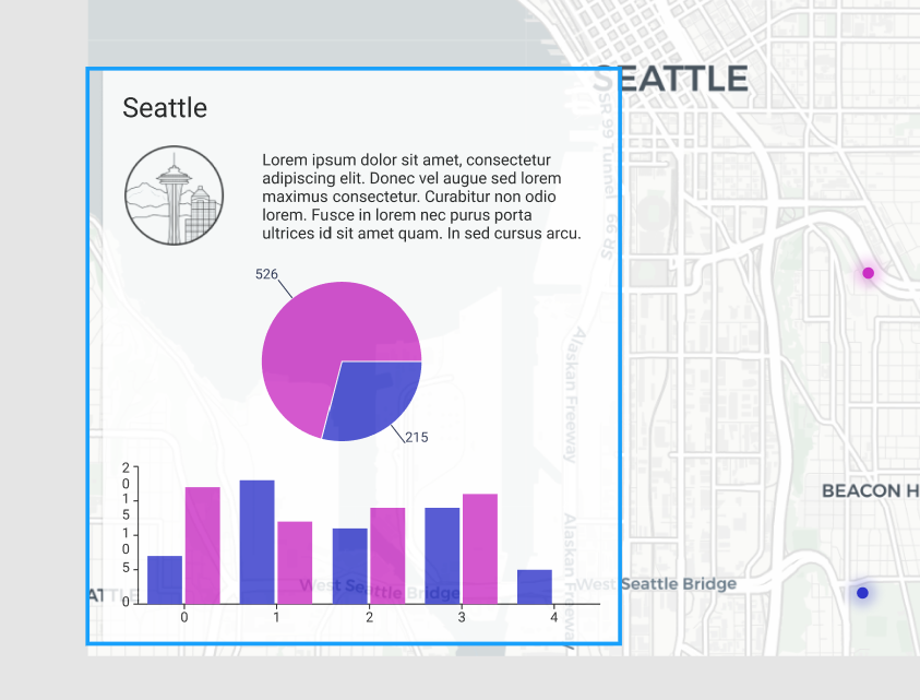 In this part, we will add an info panel at the left bottom corner of our page. It should include a seattle logo, a paragraph with some background information about this project, and some data visualizations to help the users to find patterns and gain insights.