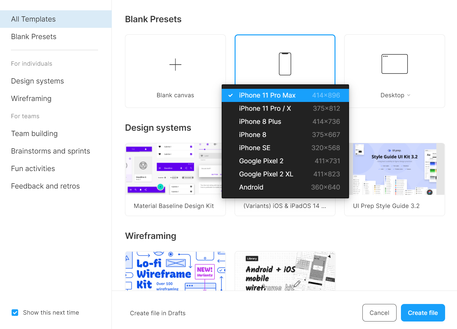You could also create mockups for other devices with different screen sizes in Figma. In this section, we will take the mobile version for an illustration.