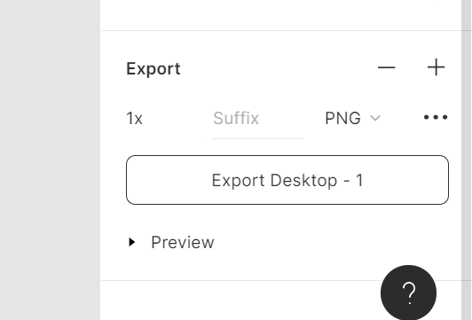Select the Desktop - 1 frame, At the right side of you screen, click the Plus sign right beside Export to export the frame.